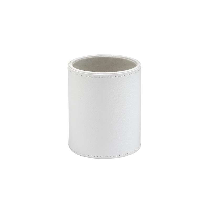 Μολυβοθήκη στρογγυλή δερμάτινη σε διάφορους χρωματισμούς, διαστάσεως 9 x 9 x 10,5cm. Από την εταιρεία Osco