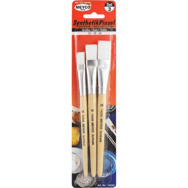 Σετ με 3 πινέλα από συνθετική τρίχα σε μορφή πλακέ για αποτελεσματική αποτύπωση του χρώματος. Από την εταιρεία Meyco