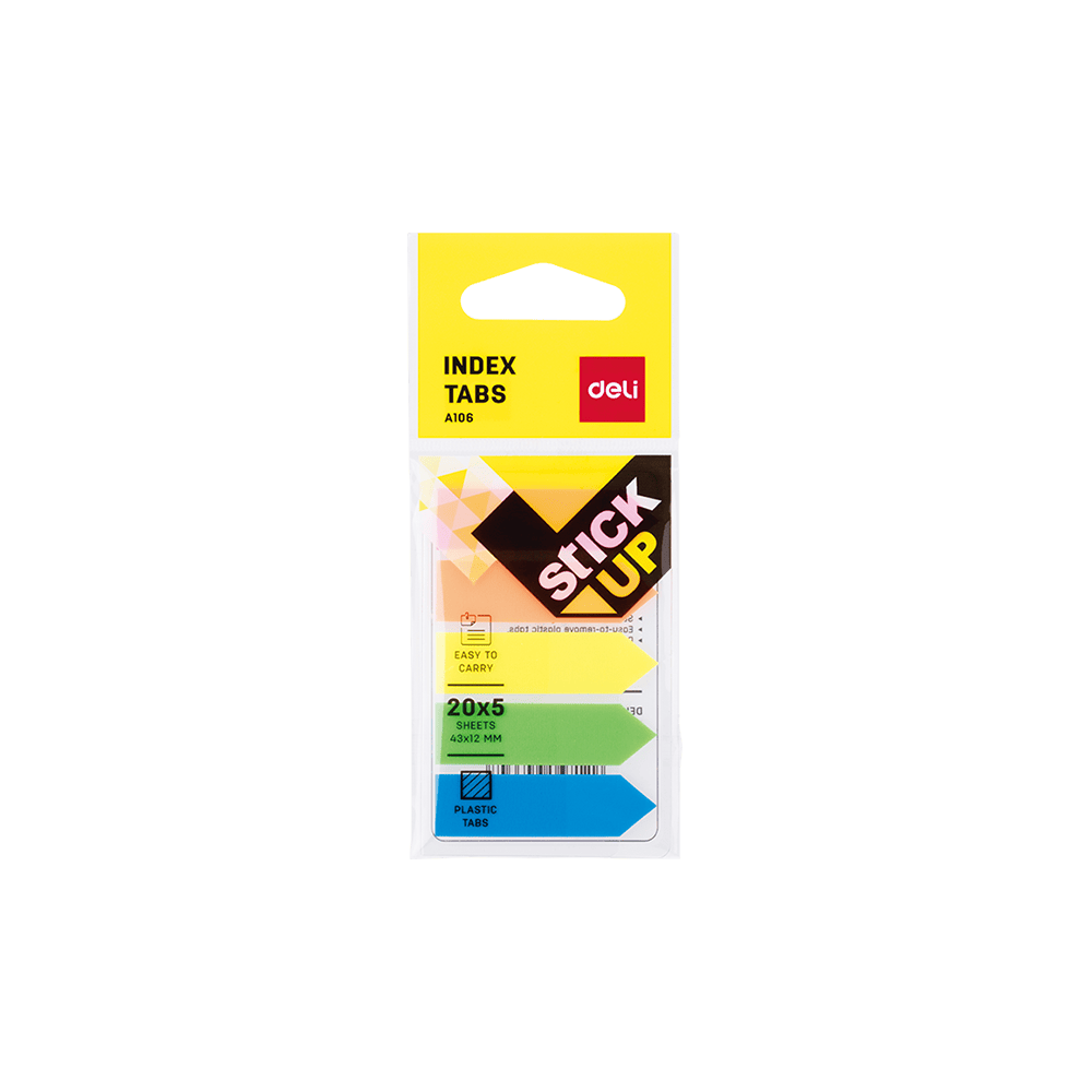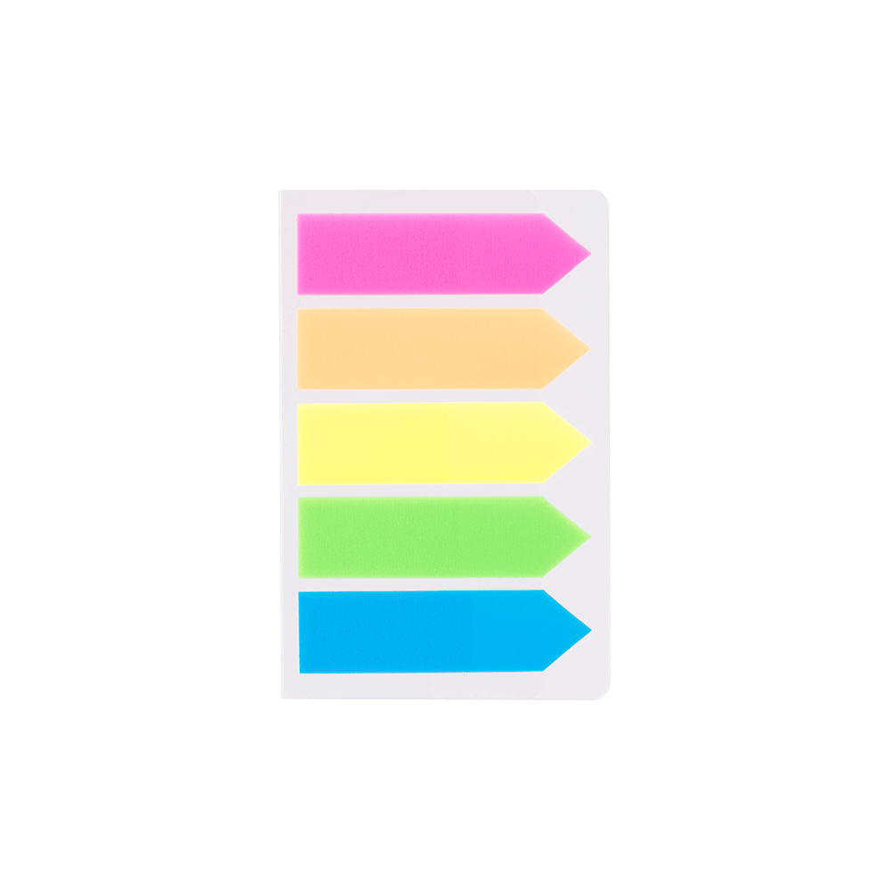 Αυτοκόλλητοι σελιδοδείκτες διαφανείς σε 5 αποχρώσεις με 20 φύλλα το κάθε χρώμα, σε σχήμα βέλος.