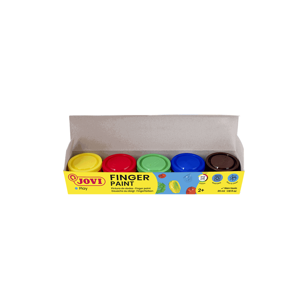 Η JOVI Finger Paint είναι μια φυσικής βάσης μπογιά, ειδικά σχεδιασμένη για ζωγραφική με τα δάχτυλα, προσφέροντας στα παιδιά μια διασκεδαστική και εκπαιδευτική εμπειρία μέσα από μια ευρεία γκάμα ζωντανών χρωμάτων. Με τη μοναδική, ζελατινώδη υφή της, η μπογιά αυτή είναι ευχάριστη στην αφή και βοηθά στην ανάπτυξη του συντονισμού χεριών και δαχτύλων, καθώς και των λεπτών κινητικών δεξιοτήτων των παιδιών. Είναι απολύτως ασφαλής, υποαλλεργική, χωρίς γλουτένη και άλλα κύρια αλλεργιογόνα, ενώ η μη τοξική της σύνθεση καθιστά τη JOVI Finger Paint κατάλληλη για χρήση από παιδιά κάθε ηλικίας. Τα χρώματα μπορούν να αναμειχθούν, επιτρέποντας στα παιδιά να δημιουργήσουν διαφορετικές αποχρώσεις, ενώ η μπογιά καθαρίζεται 100% και αφαιρείται εύκολα από χέρια, ρούχα και επιφάνειες. Για τη χρήση, τα παιδιά μπορούν να επιλέξουν το χρώμα που θέλουν και να ζωγραφίσουν σε μια επιφάνεια με τα δάχτυλα σαν πινέλο ή να δημιουργήσουν αποτυπώματα με τα χέρια, τα πόδια ή σφουγγάρια. Σε περίπτωση που η μπογιά λερώσει τα ρούχα, προτείνεται πλύση στο πλυντήριο σε κανονικό κύκλο, ή εναλλακτικά πλύση στο χέρι, αποφεύγοντας τη χρήση στεγνωτηρίου, ώστε να μην παραμείνουν λεκέδες.