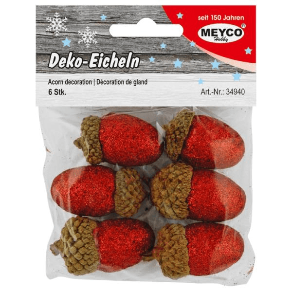 Σετ με 6 κόκκινα & glitter Βελανίδια διαστάσεως 2χ3,5cm. Από την εταιρεία Meyco