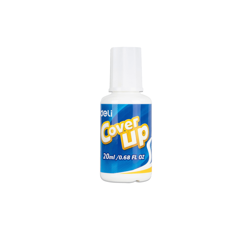 To διορθωτικό υγρό Deli Cover Up 20ml διορθώνει κάθε λάθος εύκολα, γρήγορα και κυρίως καθαρά! Διαθέτει πινέλο που απλώνει ομοιόμορφα και εύκολα το υγρό. Στεγνώνει γρήγορα και έχει άριστη καλυπτικότητα. Είναι κατάλληλο για χειρόγραφα, εκτυπώσεις και fax.