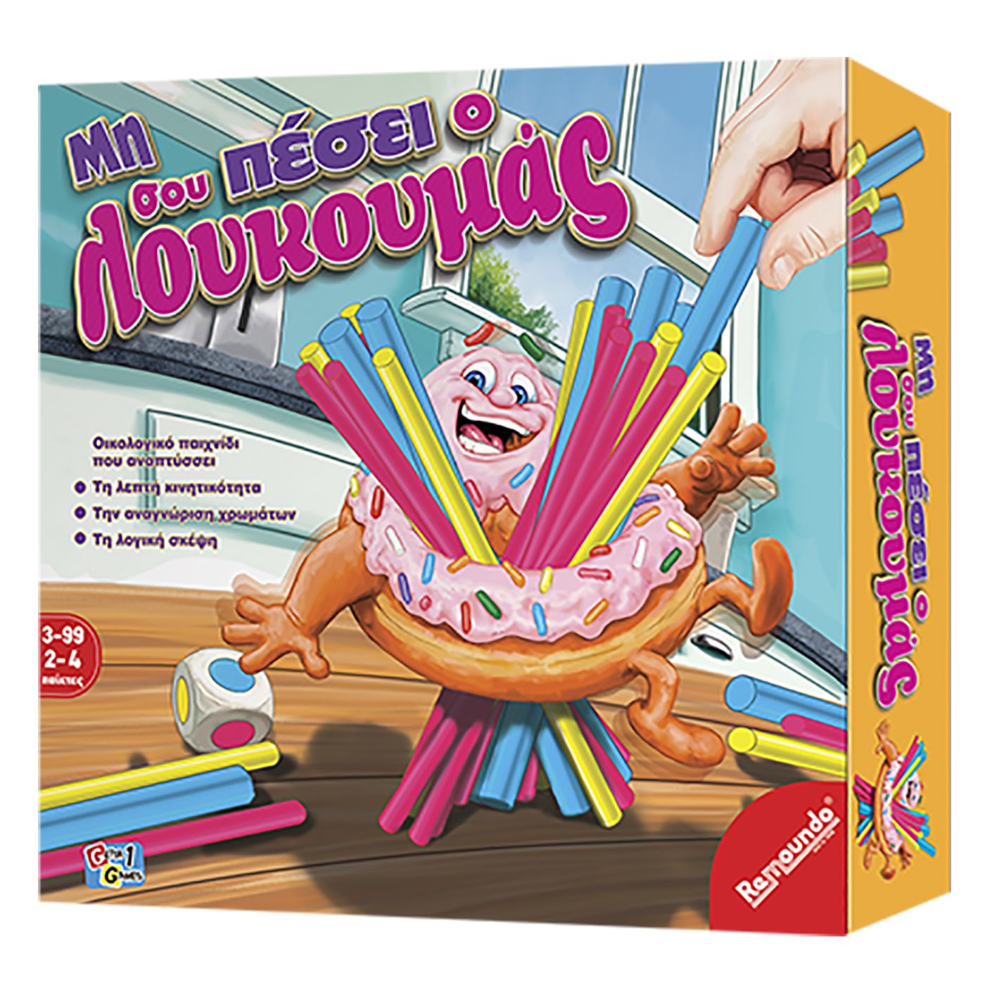 Επιτραπέζιο παιχνίδι, διαδραστικό. Ρίχνεις το ζάρι, τραβάς τη ράβδο στο χρώμα που πρέπει και ο στόχος είναι να μην πέσει ο λουκουμάς. Ένα διασκεδαστικό παιχνίδι για παίκτες από 2 έως 4, και ηλικίες 3+. Από την εταιρεία Remoundo