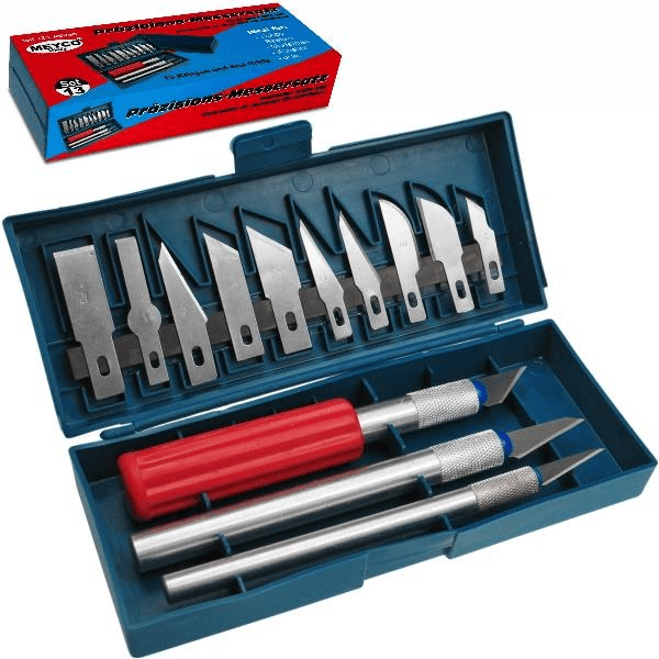Κασετίνα με 13 ανταλλακτικά κοπίδια σε διάφορα μεγέθη και σχήματα, και 3 βάσεις.