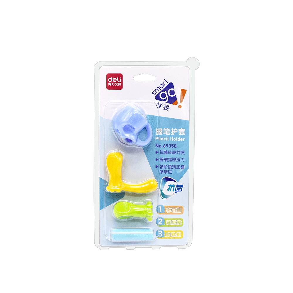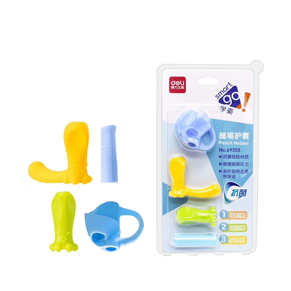 Η ανατομική λαβή μολυβιού της Deli ενθαρρύνει και βοηθά το παιδί να κρατά σωστά το μολύβι, προσφέροντας στήριξη και σωστή τοποθέτηση των δαχτύλων. Είναι φτιαγμένη από σιλικόνη για μαλακό κράτημα και με διάσταση 190x100mm ταιριάζει σε όλα τα μολύβια. Διατίθεται σε σετ 4 τεμαχίων με διαφορετικά εργονομικά σχήματα και χρώματα.