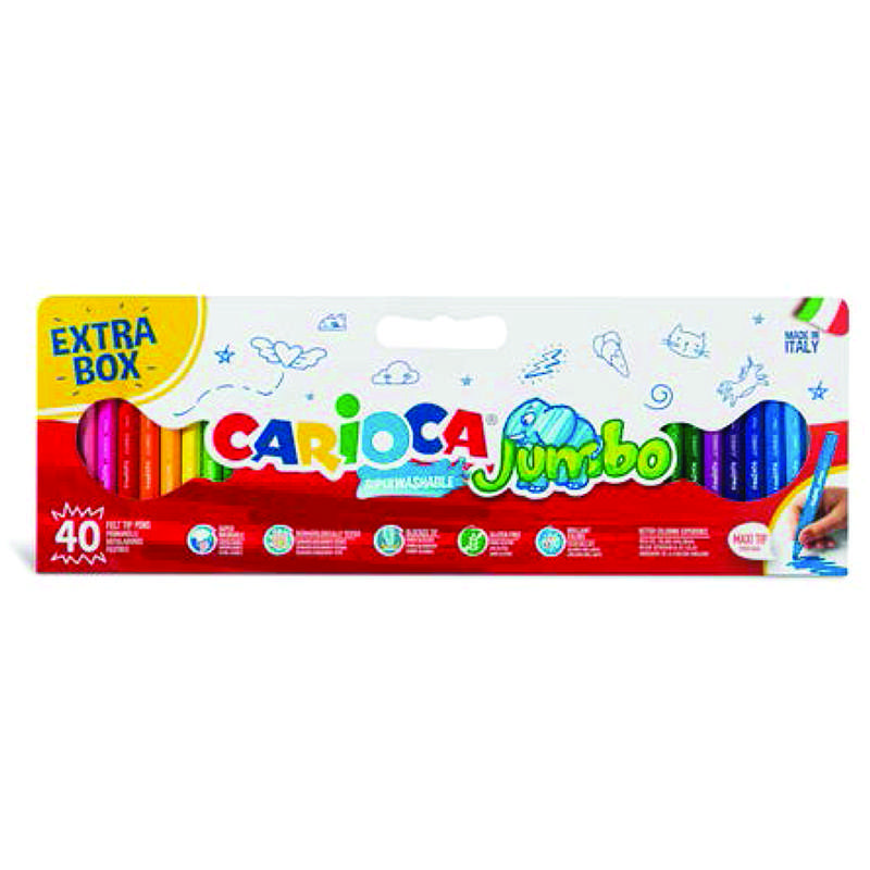Ένα πλήρες χάρτινο κουτί με 40 jumbo/maxi μαρκαδόρους σε 40 διαφορετικά χρώματα, από την εταιρεία Carioca