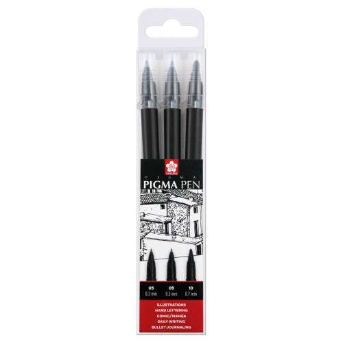 Σετάκι μαρκαδόρων lettering pens με δύο μαρκαδόρους με μύτες 05-0.3mm, και έναν μαρκαδόρο 10-0.7mm. Για απλό γράψιμο, για κόμικ & manga, για διαμόρφωση ενός έντονου μαύρου σχεδίου.