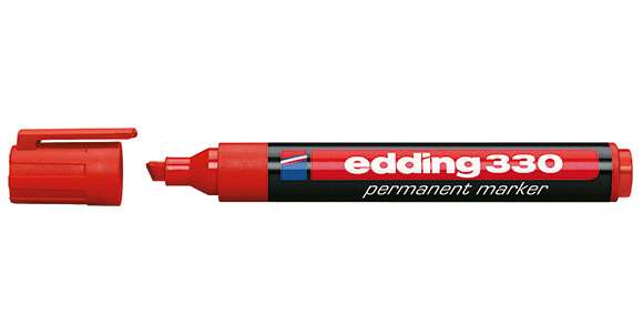 Μαρκαδόρος ανεξίτηλος για τις περισσότερες επιφάνειες, με πλακέ μύτη. Από την εταιρεία Edding