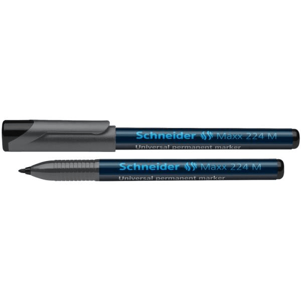 Μαρκαδόρος ανεξίτηλος, μεσαίο πλάτος γραμμής (M) περίπου: 1,0 mm. Για γραφή σε διαφάνειες (OHP), χαρτί, πλαστικό, γυαλί, μέταλλο και σχεδόν όλα τα άλλα υλικά. Από την εταιρεία Schneider