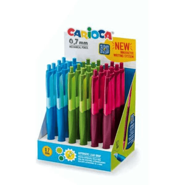Μηχανικό μολύβι με εργονομική λαβή και clicker σε τρία χρώματα, κατάλληλο για μύτες 0.7mm. Από την εταιρεία Carioca