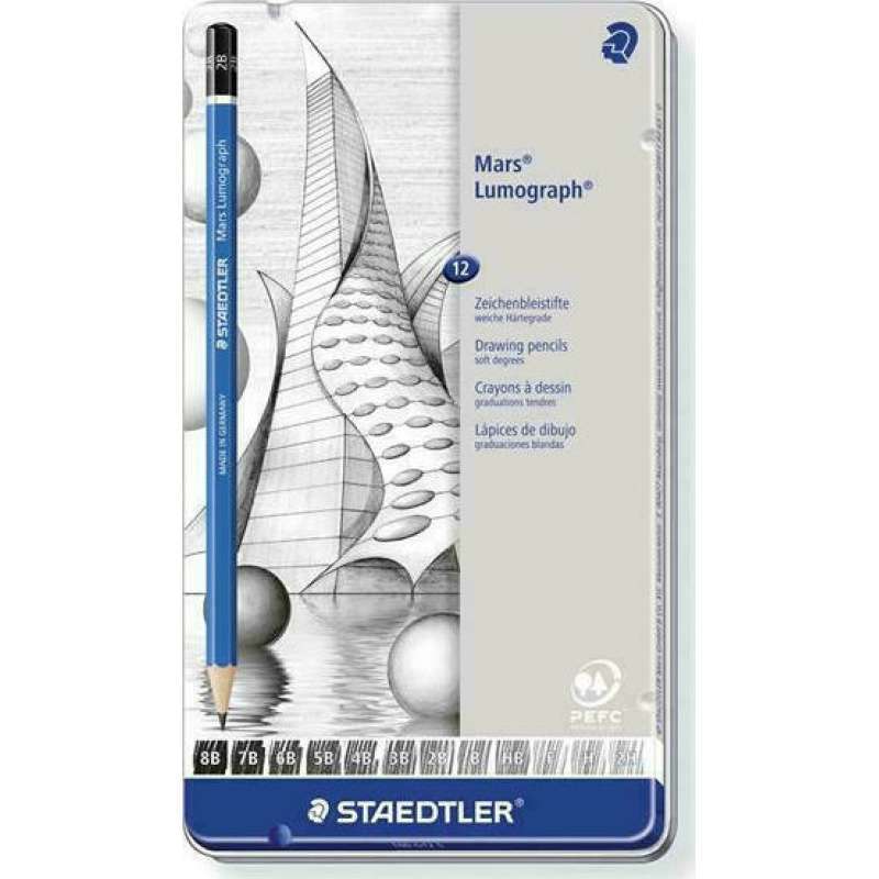 Μεταλλική κασετίνα με μολύβια σχεδίου από την εταιρεία Staedtler (8B,7B,6B,5Β,4Β,3Β,2B,B,ΗΒ,F,Η,2Η)