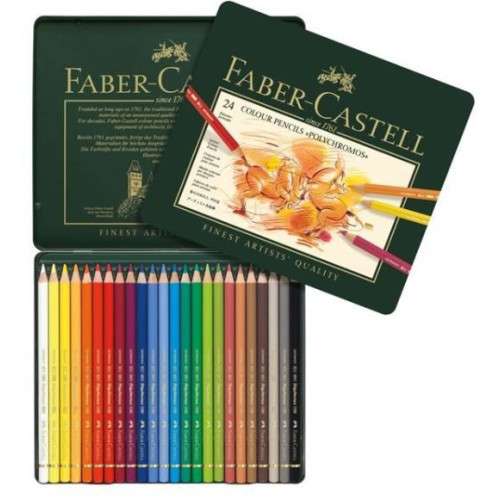 Χρωματιστά μαλακά μολύβια Faber Castell Polychromos 110012 σετ 12 τεμαχίων.Ξυλομπογιές με στρογγυλό σχήμα για ξεκούραστη χρήση σε μεταλλική κασετίνα.Η σειρά polychromos της Faber είναι ιδιαίτερα υψηλής ποιότητας, αξεπέραστης λάμψης και ανθεκτικότητας στο ξεθώριασμα από το φως.Με μύτη πυκνής υφής,ανθεκτική στο νερό δεν μουτζουρώνει και είναι μαλακή κατά τη χρήση.Ανθεκτική στο σπάσιμο,χάρη στο ειδικό σύστημα δεσίματος της μύτης στο σώμα του μολυβιού.