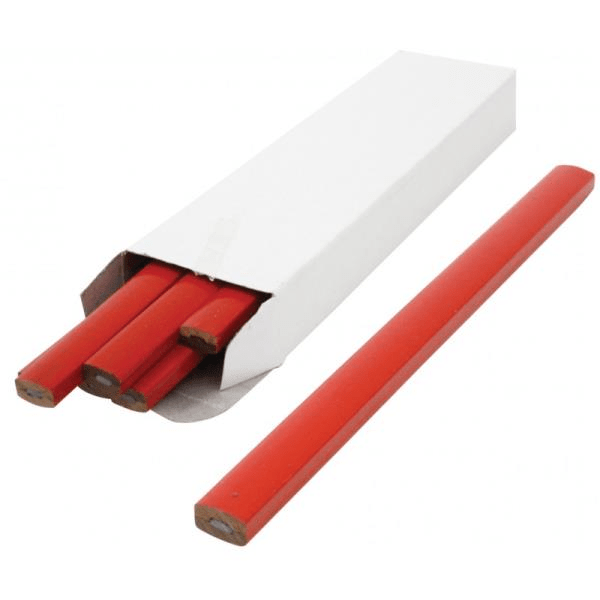 Το κλασικό μολύβι των μαραγκών σε πλακέ μορφή και κόκκινο περίβλημα.
