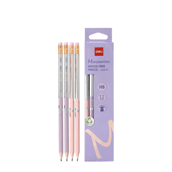 Τα μολύβια Macaron της Deli σου εξασφαλίζουν άνετη γραφή, χάρη στο εξάγωνο εργονομικό σχήμα τους. Με σκληρότητα HB σου επιτρέπουν να κάνεις καθαρές και έντονες γραμμές. Κατασκευασμένα από Wood-Free υλικό, ξύνονται εύκολα χωρίς να σπάνε. Η PVC-Free γόμα τους σβήνει τέλεια και δε φθείρει το χαρτί. Διατίθενται σε σετ 6 τεμαχίων. Με τη νέα Macaron Collection τα αντικείμενα του γραφείο σου γίνονται τόσο γλυκά σαν ζαχαρωτά!