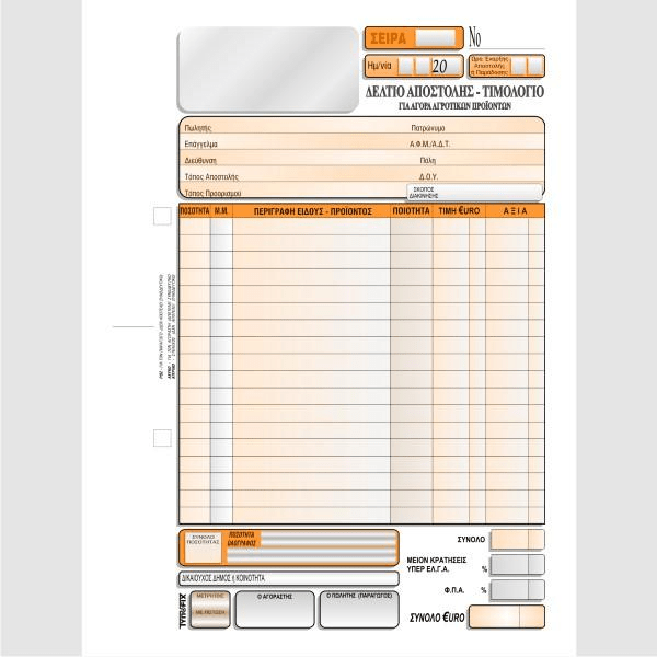 Μπλοκ/έντυπο δελτίο αποστολής-τιμολόγιο για αγορά αγροτικών προϊόντων, τριπλότυπο. Από την εταιρεία ΤΥΠΟΦΙΞ