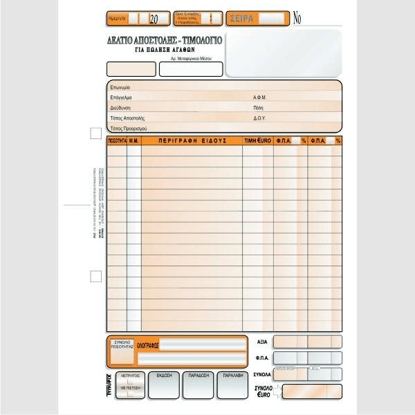Μπλοκ/έντυπο δελτίο αποστολής & τιμολόγιο για πώληση αγαθών,τριπλότυπο. Από την εταιρεία ΤΥΠΟΦΙΞ