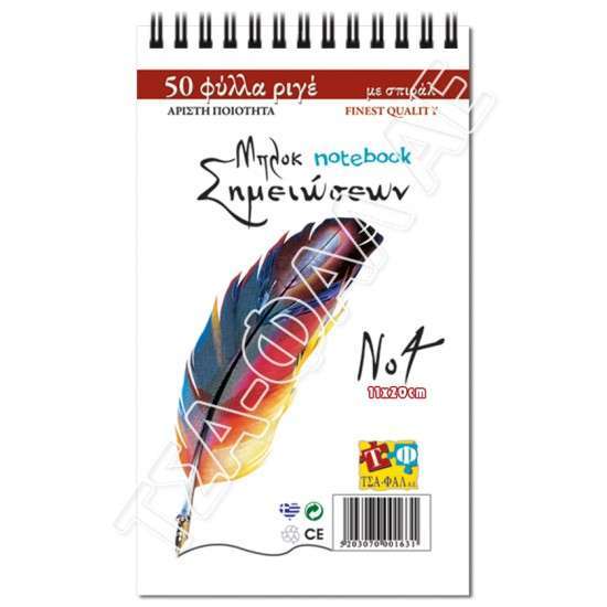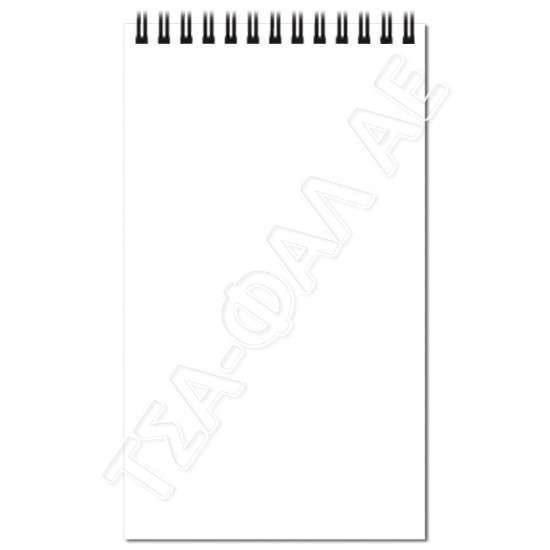 Μπλοκ με σπιράλ, όρθιο με 50 λευκές σελίδες σε διάσταση 11×20εκ, με χαρτί 70γραμμ, ελληνικής παραγωγής. Από την εταιρεία ΤΣΑ-ΦΑΛ