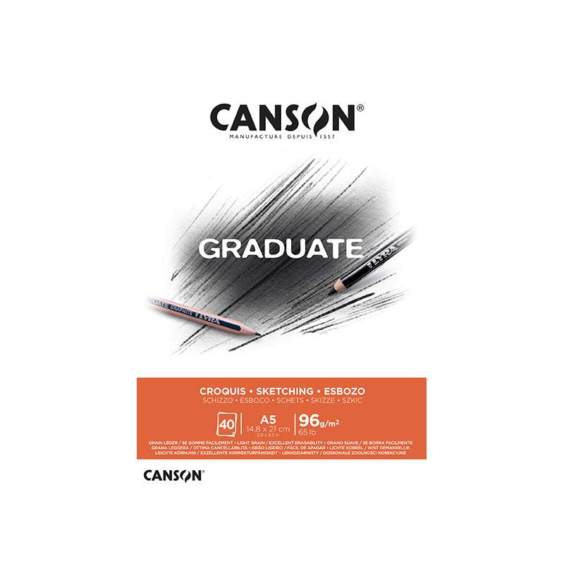 Μπλοκ σχεδίου κολλητό, σε διάσταση 14,8×21εκ. για σχέδιο με μολύβι ή κάρβουνο. Από την εταιρεία Canson