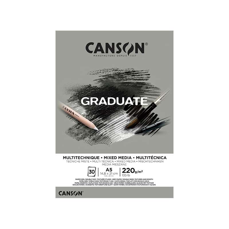 Μπλοκ σχεδίου κολλητό, σε διάσταση 14,8×21εκ. με γκρίζο χονδρό χαρτί, για χρήση λευκού μολυβιού, πινέλου ή και brush pen. Από την εταιρεία Canson
