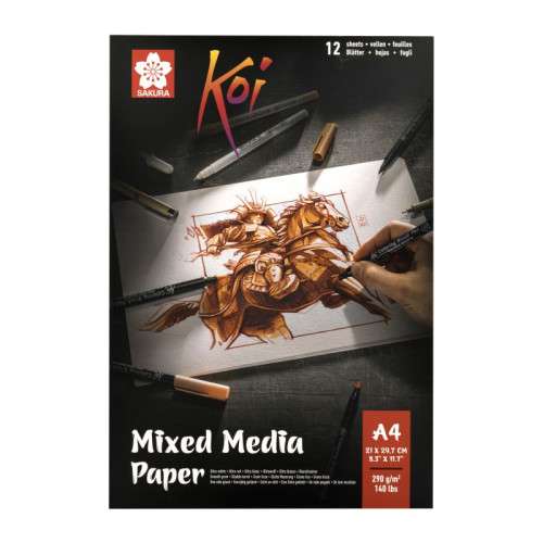 Το χαρτί μικτής τεχνικής Koi είναι η τέλεια επιφάνεια για συνδυασμό διαφόρων τεχνικών τέχνης. Αυτό το έξτρα λευκό και εξαιρετικά απαλό χαρτί προβάλλει εξαιρετικά τα χρώματα και είναι ιδανικό για χρήση με ακουαρέλες, μαρκαδόρους, στυλό gel, γκουάς, μελάνι, κάρβουνο και μολύβι. Κατασκευασμένο από 100% κορυφαίας ποιότητας κυτταρίνη. Τέλειο σε συνδυασμό με ακουαρέλες Koi και στυλό με πινέλο!