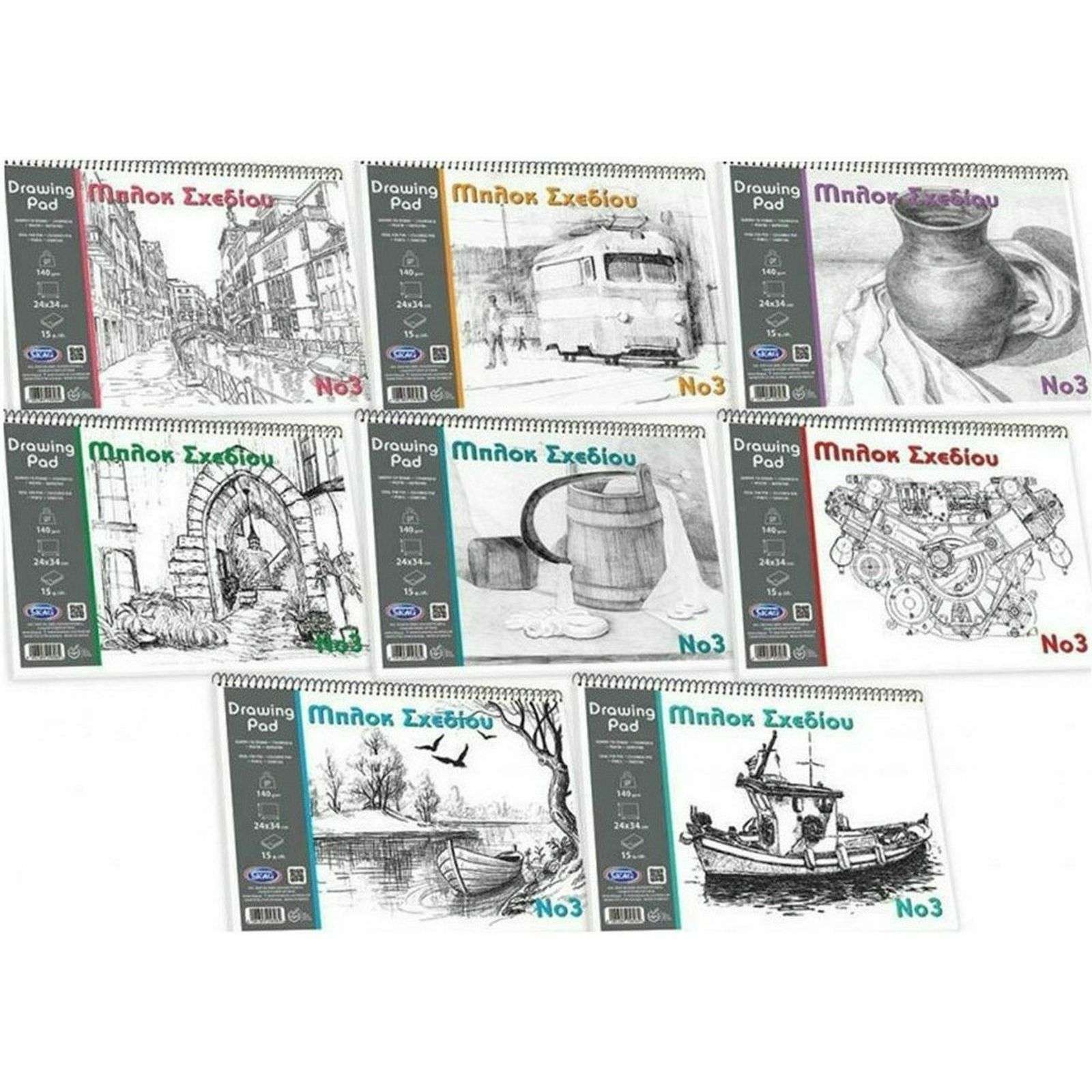 Μπλοκ σχεδίου με σπιράλ και άνοιγμα από την μεγάλη πλευρά, για μολύβι και ξυλομπογιά, με 140γραμμ ανα τετραγωνικό μέτρο.