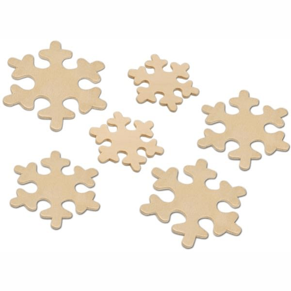 Συσκευασία με 9 ξύλινα σχήματα σε μορφή χιονονιφάδας, σε διάφορα μεγέθη. Από την εταιρεία Meyco