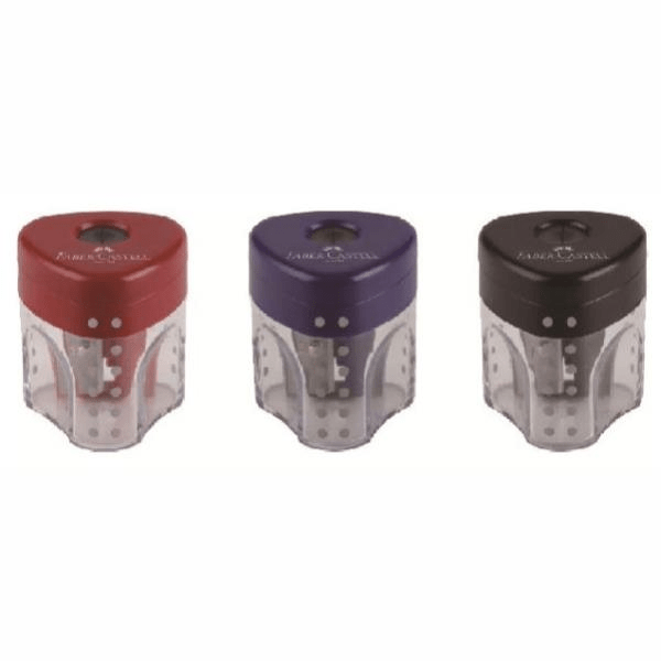Ξύστρα της Faber Castell mini grip σε τρεις χρωματισμούς με μία τρύπα.