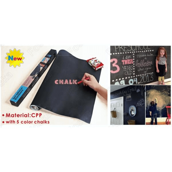 Αυτοκόλλητος μαυροπίνακας για τον τοίχο με 5 χρωματιστές κιμωλίες. Από την εταιρεία Foska
