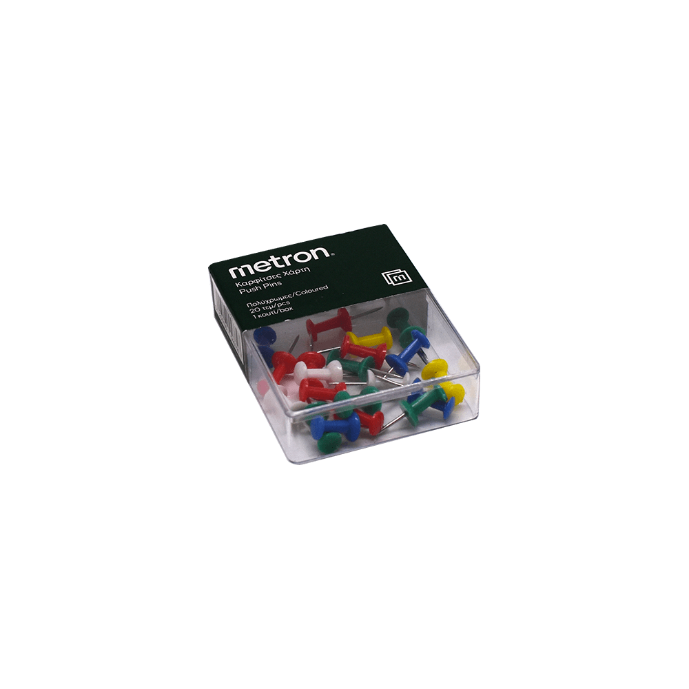 Πινέζες Χάρτη Σβούρα Metron Πλαστικό Κουτί 20τεμ.