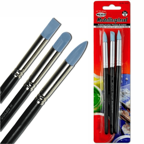 Σετ με 3 πινέλα για διαμόρφωση σιλικόνης, με κεφαλή από κατάλληλο υλικό για να μην κολλάει και σε τρία διαφορετικά σχήματα. Από την εταιρεία Meyco