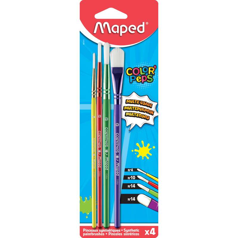Πινέλα συνθετικά με 3 τεμάχια στρογγυλά (4,10,14) και 1 τεμάχιο πλακέ (14). Για μικρούς φίλους.
