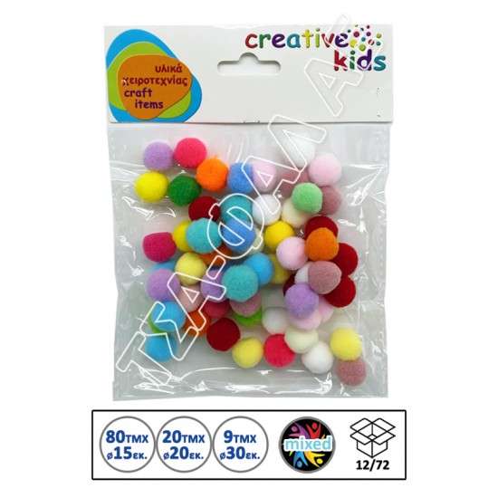 Πομ πομ σε μικρή διάσταση σε διάφορα έντονα χρώματα