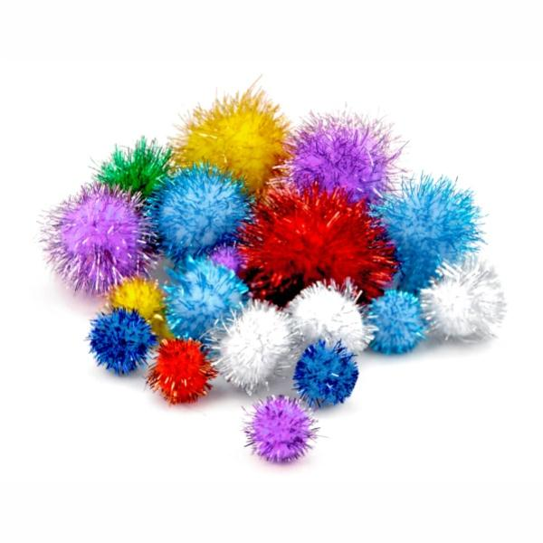 Συσκευασία με μεταλλιζέ πομ σε διάφορα χρώματα και μεγέθη, για χειροτεχνία. Από την εταιρεία Meyco