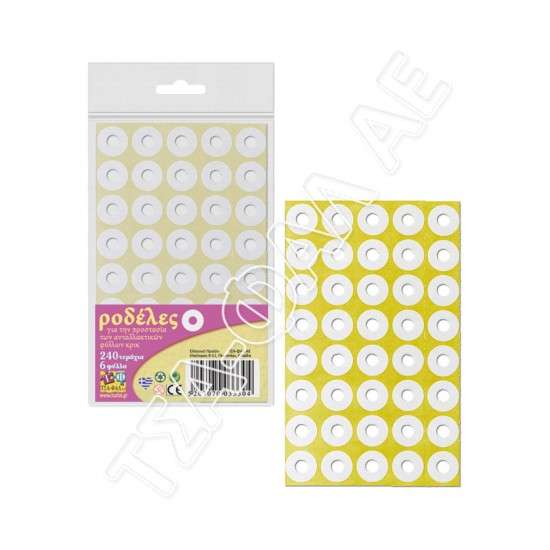 Ροδέλες αυτοκόλλητες για την προστασία των φύλλων για τα κλασέρ (ντοσιέ), 5 φύλλα με 40 ροδέλες έκαστο