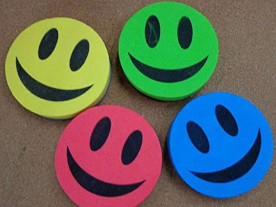 Σφουγγάρι για πίνακο σε 4 χρωματιστές στρογγυλές φατσούλες & με μαγνήτη.