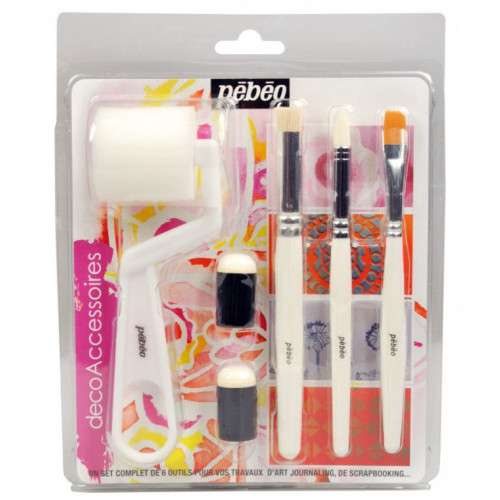 Σετ ζωγραφικής με 3 πινέλα πλακέ, ένα ρολό και δύο σταμπαδόρους για δάχτυλα