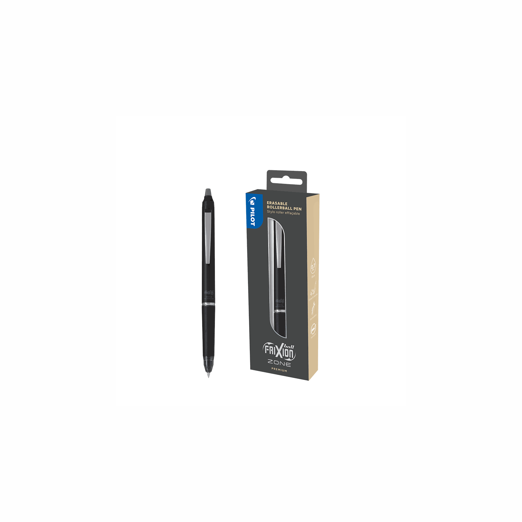 Το αγαπημένο Frixion της Pilot παίρνει formal look και γίνεται Zone. Με ελαφρύ στέλεχος σε μαύρο, γκρι, μπεζ και nude απόχρωση ταιριάζει σε κάθε τύπο. Προσφέρει ξεκούραστη γραφή και διαθέτει λαστιχένια λαβή. Η μύτη του είναι πάχους 0.7mm και το μαύρο μελάνι Frixion έχει μεγαλύτερη διάρκεια. Γράψε ξέγνοιαστα και σβήσε ότι θες με την ειδική γόμα στο πίσω μέρος του στυλό. Έκανες λάθος; Διάγραψέ το μην κολλάς!