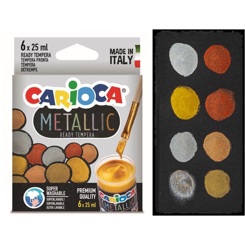 Σετ/συσκευασία με 6 βαζάκια τέμπερας μεταλλικού χρώματος για ευφάνταστη ζωγραφική και δημιουργία. Από την εταιρεία Carioca