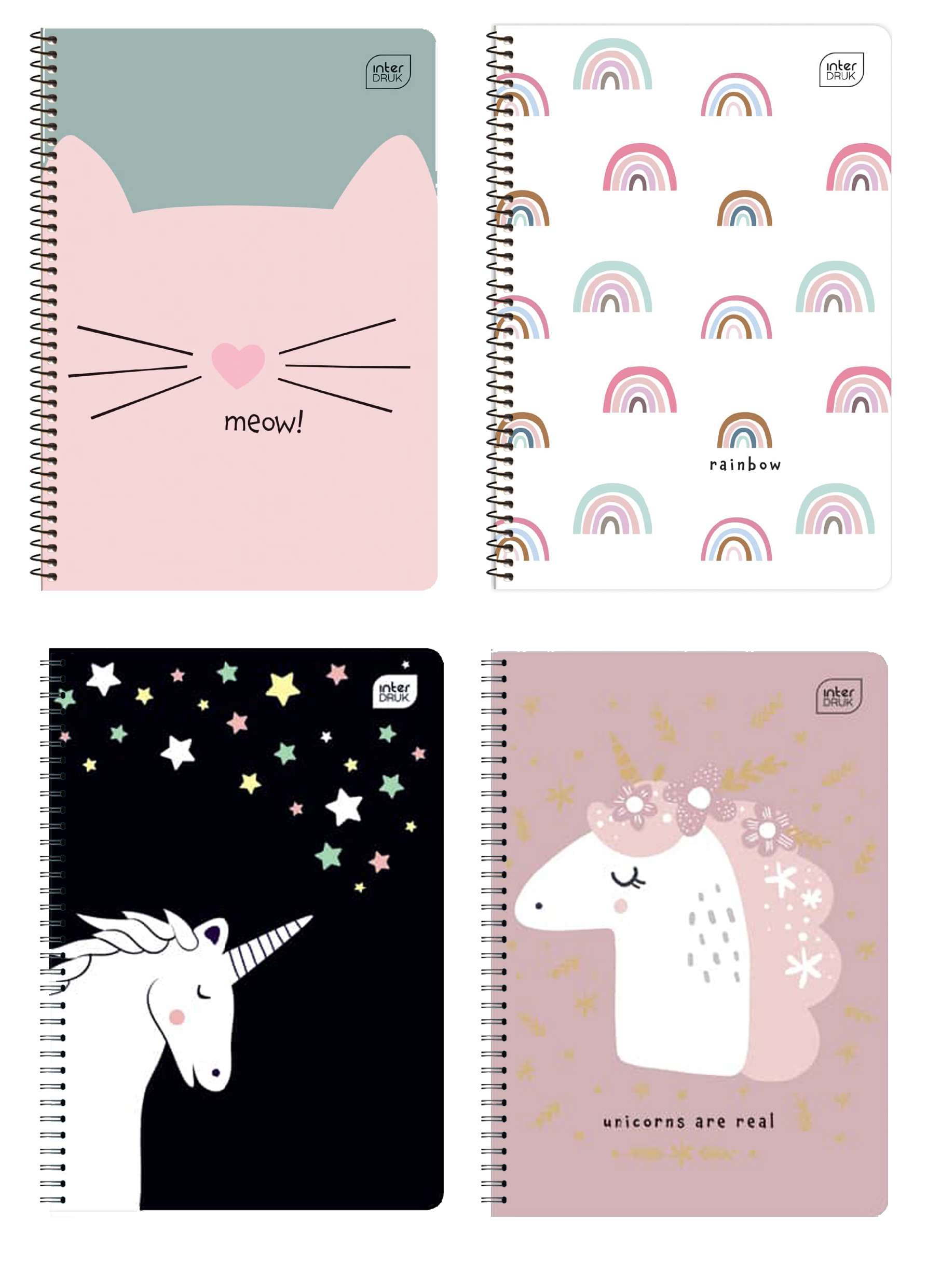 Τετράδιο σπιράλ, σε διάσταση Β5, με 4 θέματα και σχέδια girly. Από την εταιρεία Interdruk