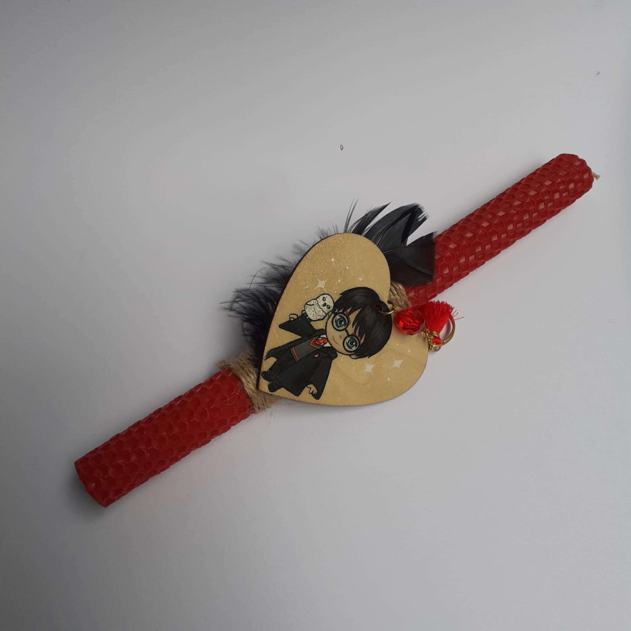 Χειροποίητη λαμπάδα, από φύλλο κηρήθρας, με χειροποίητο μπρελόκ