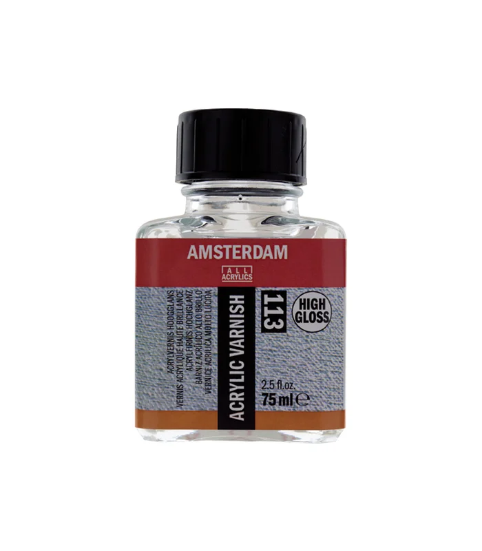 Βερνίκι σε γυάλινο μπουκάλι των 75ml που χρησιμοποιείται για την προστασία των ακρυλικών χρωμάτων (τελικό βερνίκι). Από την εταιρεία Royal Talens