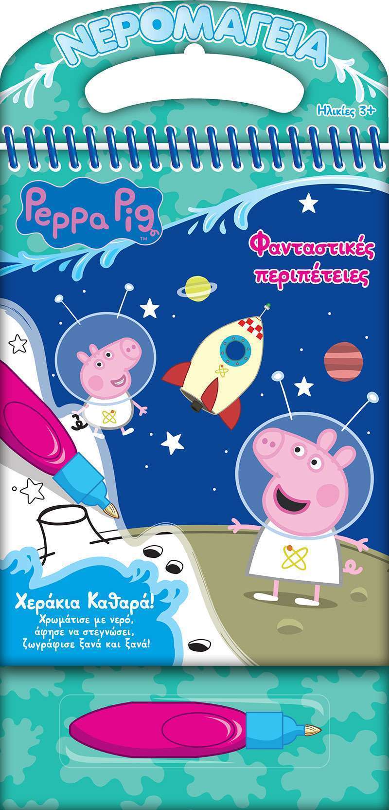 Στα βιβλία της νέας σειράς Peppa Pig Νερομαγεία, πολύχρωμες εικόνες εμφανίζονται «μαγικά» με το νεροπινελάκι. Μόλις το φύλλο στεγνώνει, τα χρώματα εξαφανίζονται! Τώρα το παιδί μπορεί να ζωγραφίσει την εικόνα ξανά και ξανά! Και η «μαγεία» των χρωμάτων που εμφανίζονται πάλι θα κρατήσει αμείωτο το ενδιαφέρον του!